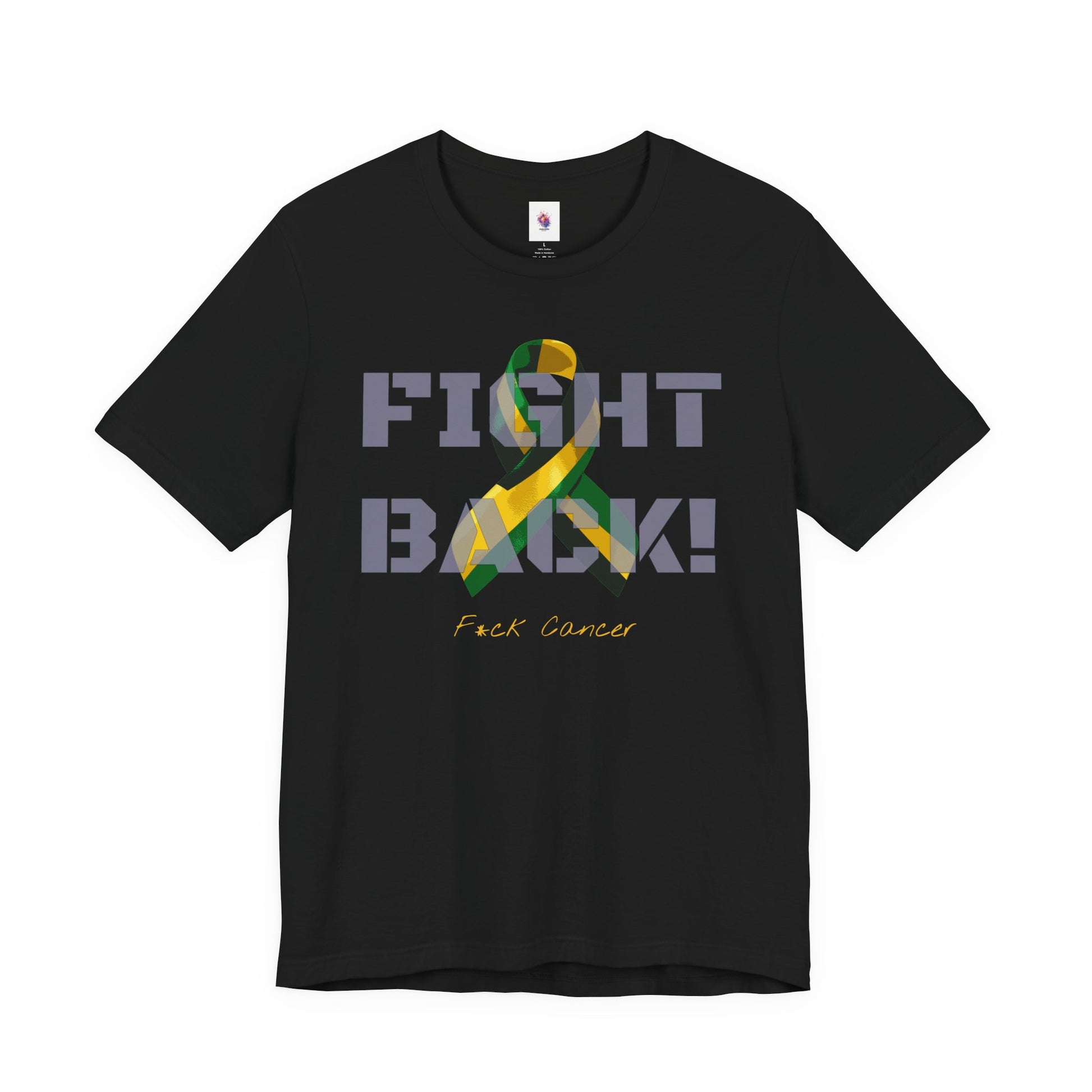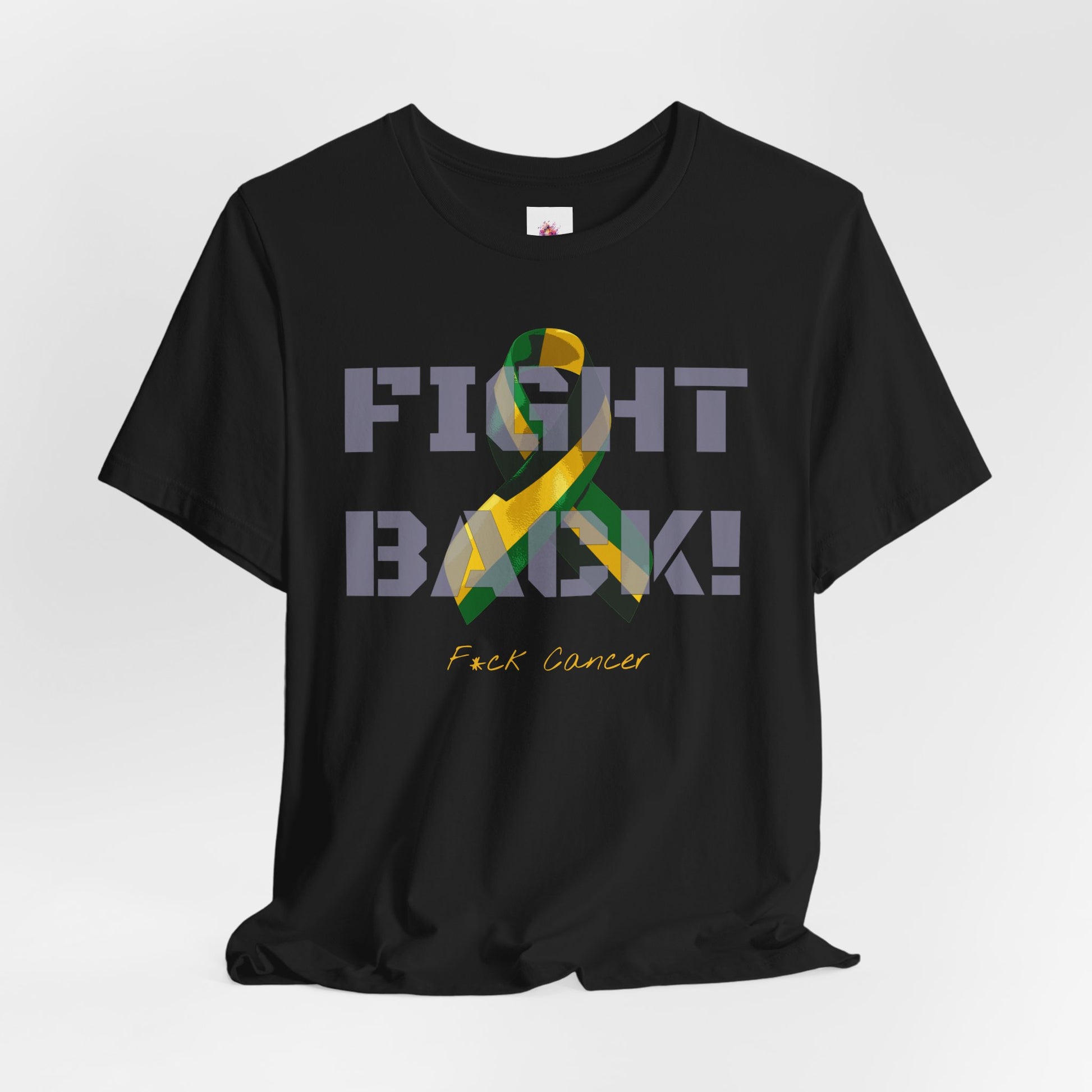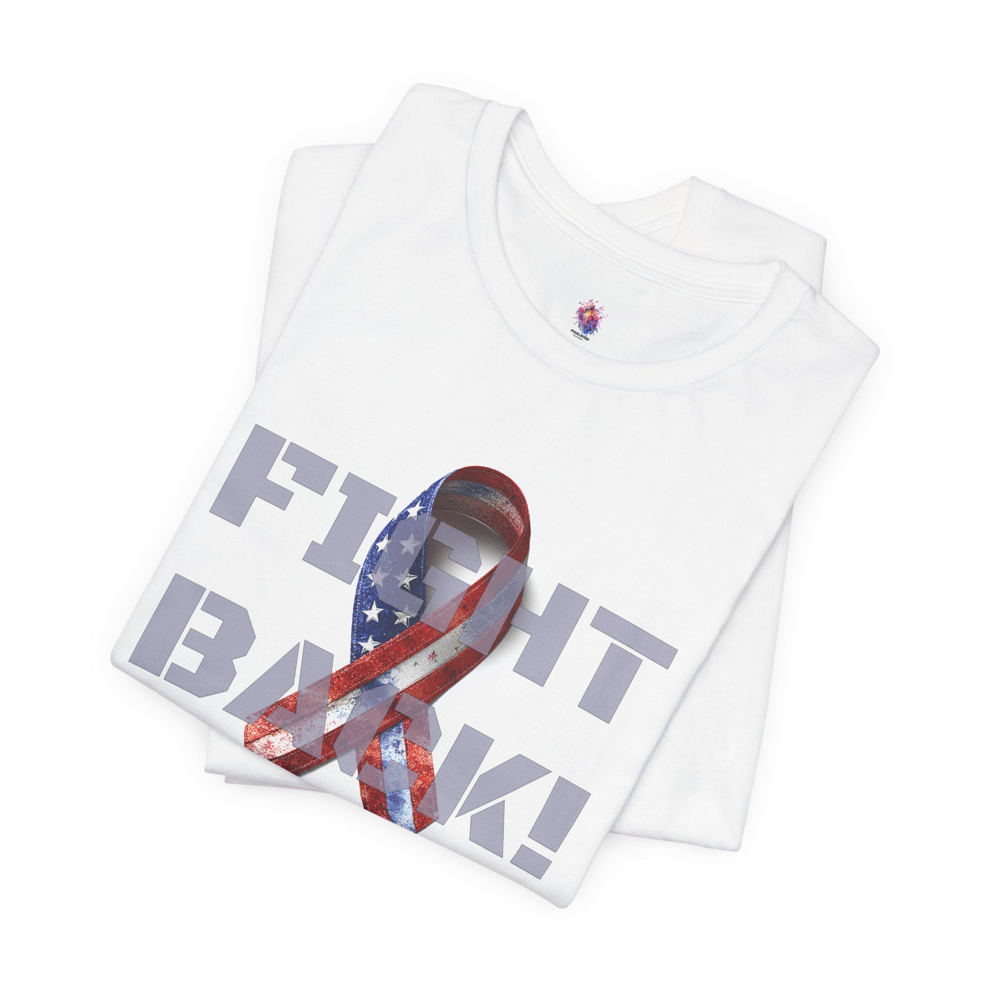 Honor the strength, legacy, and the unbreakable spirit of those touched by cancer with the “Fight Back!” Memorial T-Shirt. This powerful piece features a red, white, and blue cancer awareness ribbon seamlessly blended into the bold design of the American flag—symbolizing resilience, unity, and national pride. With the words “Fight Back!” emblazoned across the front, this shirt serves as a rallying cry for every warrior currently battling cancer and a heartfelt tribute to those we’ve loved and lost.